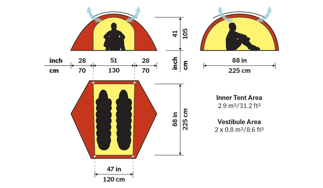Since its introduction over 10 years ago, the two-person Allak has been one of Hilleberg’s most popular tents. Both remarkably light yet impressively strong, Allak models are well-suited for anything from summer paddling to winter ski mountaineering, and from year-round backpacking to all-season peak bagging. They are easily light enough for mobile journeys, where you move your camp every day, and their two-entrance construction allows for superb ventilation options in warm weather. At the same time, the Allak’s three-pole dome structure is strong enough for summer or winter base camp use in all but the worst conditions, and the fully freestanding construction make it ideal for tough pitching conditions, such as rocky ground and sand. In addition, its two integrated vestibules are set parallel to the sleeping area, giving excellent access to gear storage space as well as ease of entry and exit. Since its introduction, paddlers have valued the Allak’s ability to be pitched nearly anywhere, while backpackers choose it for its roomy stability and light weight. Mountaineers appreciate both the Allak’s freestanding design, compact footprint, and its roominess, as well as its ability to deal with snow loading. And taller adventurers find its length a welcome comfort.