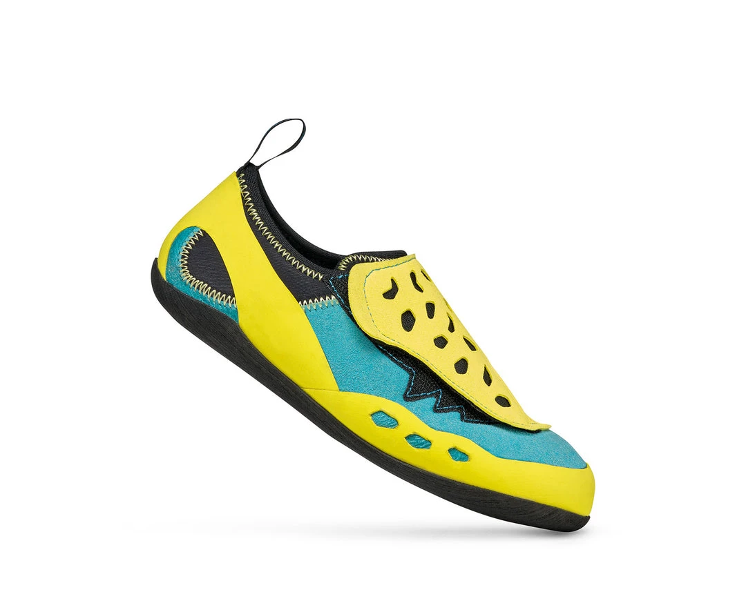 With a flat-lasted profile, sticky yet durable Visionâ„¢ rubber sole, and a super flexible no-midsole construction, the Piki is the perfect first shoe for young climbers.