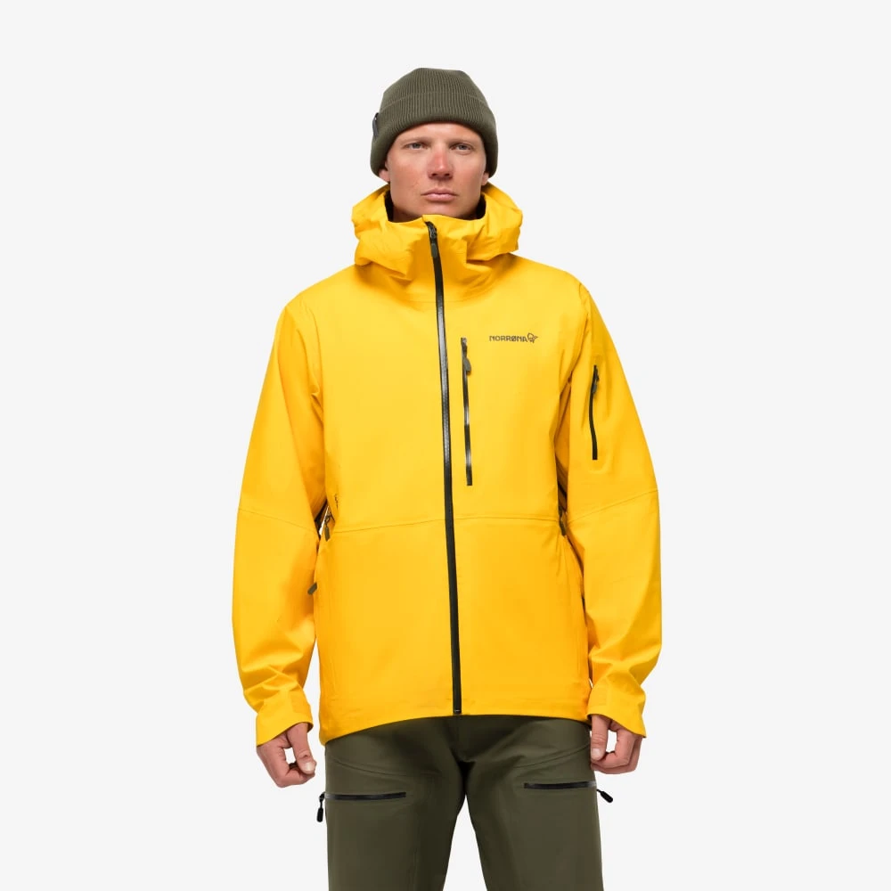 It has the shortest cut of the lofoten Gore-Tex jackets and has a regular, slightly shorter and boxier fit. The spacious napoleon chest pockets will not interfere with backpacks and the hand warming pockets will provide extra storage.
